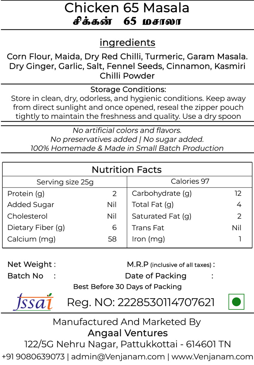 வெஞ்சனம் சிக்கன் 65 மசாலா – உண்மையான தென் இந்திய மொறு மொறு சிக்கன் மசாலா கலவை