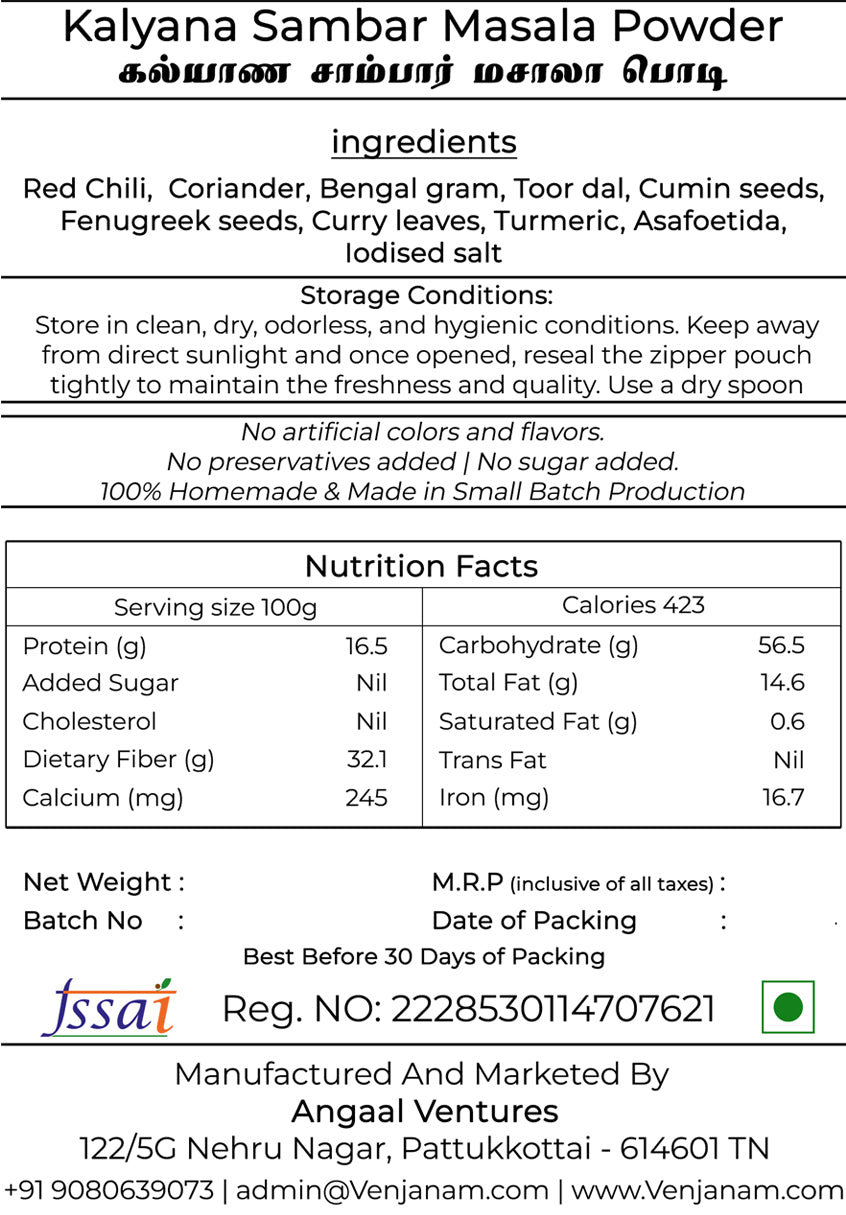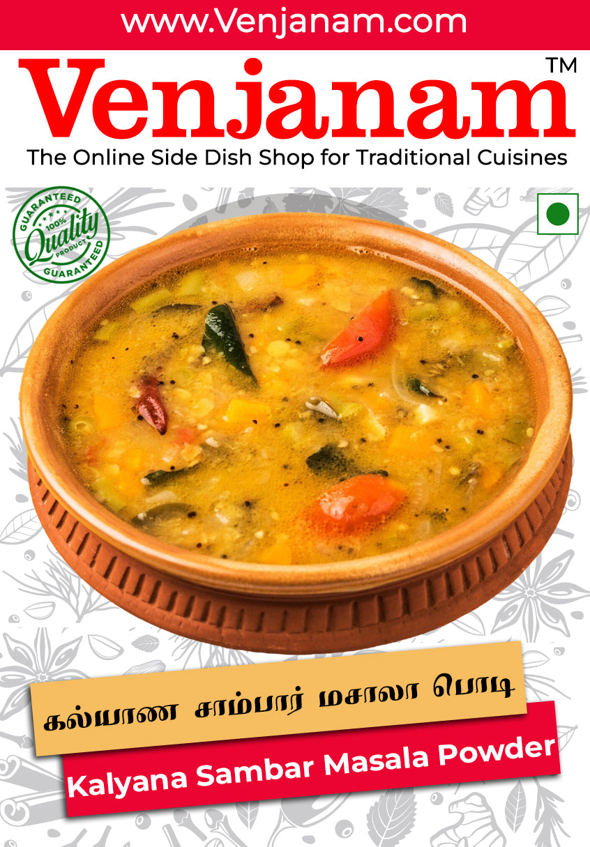 வெஞ்சனம் கல்யாண சாம்பார் மசாலா பவுடர் - உண்மையான தஞ்சாவூர் திருமண பாணி சாம்பார் மசாலா கலவை