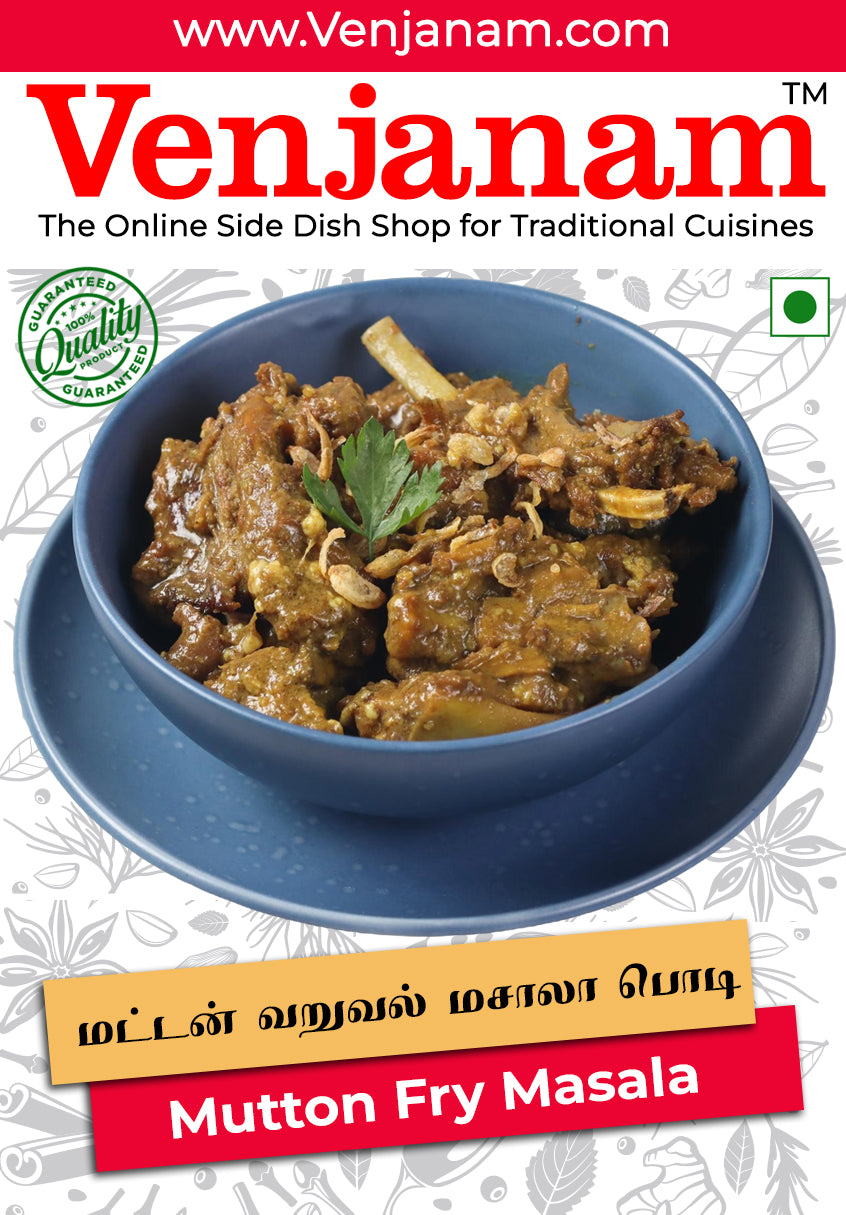 உங்கள் வீட்டிலேயே மொறு மொறு, காரமும் மணமும் நிறைந்த மட்டன் வறுவல் செய்ய வெஞ்சனம் மட்டன் ஃப்ரை மசாலா உதவும்.
