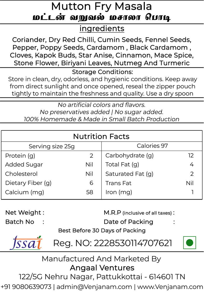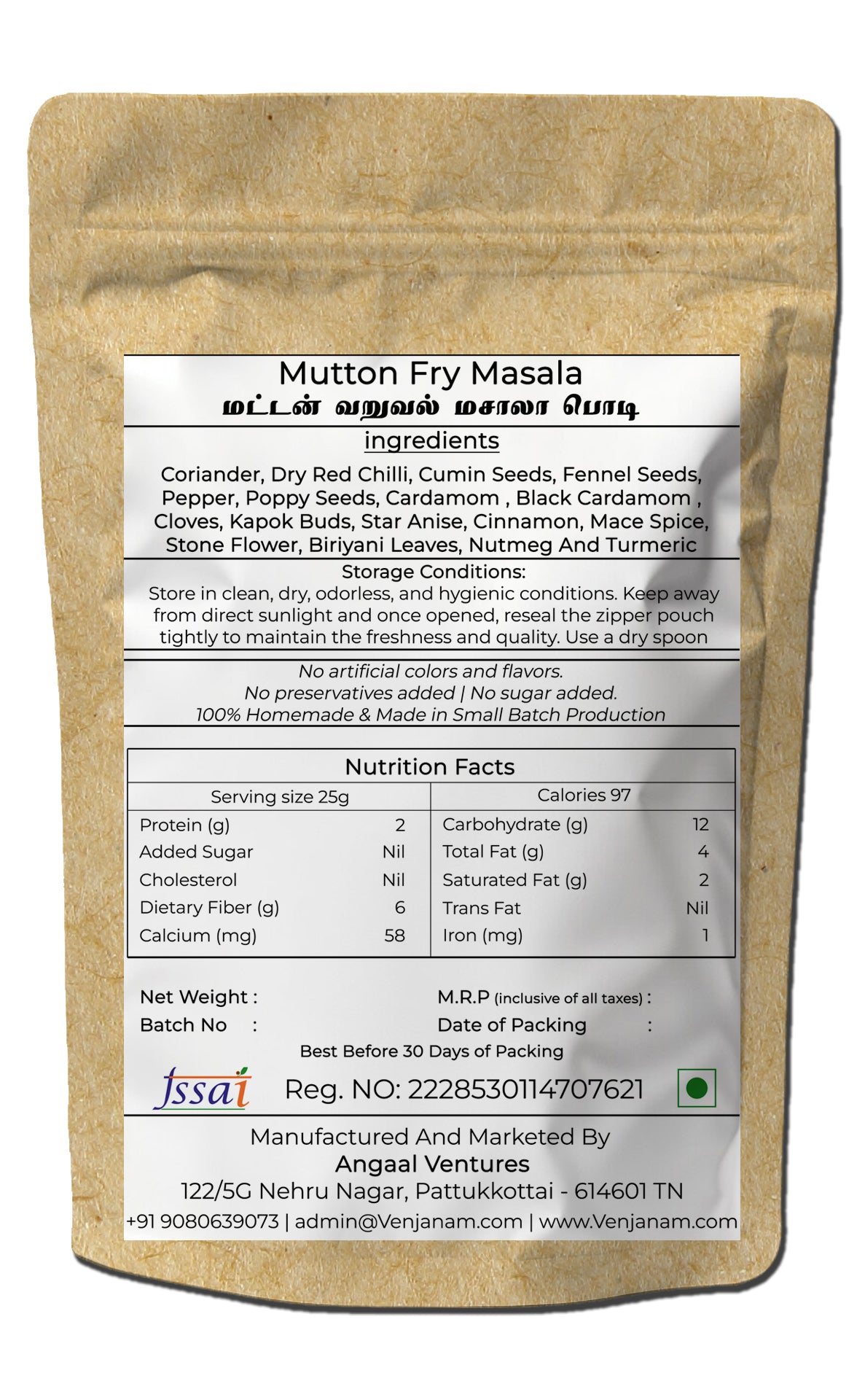வெஞ்சனம் மட்டன் ஃப்ரை மசாலா – உண்மையான தென் இந்திய செட்டிநாடு பாணி மட்டன் வறுவல் மசாலா கலவை