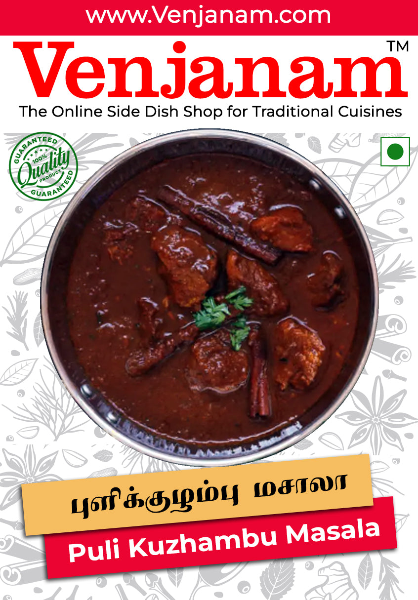 வெஞ்சனம் புளி குழம்பு மசாலா மூலம், உங்கள் அன்றாட சமையலை புளிப்பும் காரமும் கொண்ட, மணமிகு தமிழ்நாட்டு பாரம்பரிய உணவாக மாற்றிக் கொள்ளலாம்.