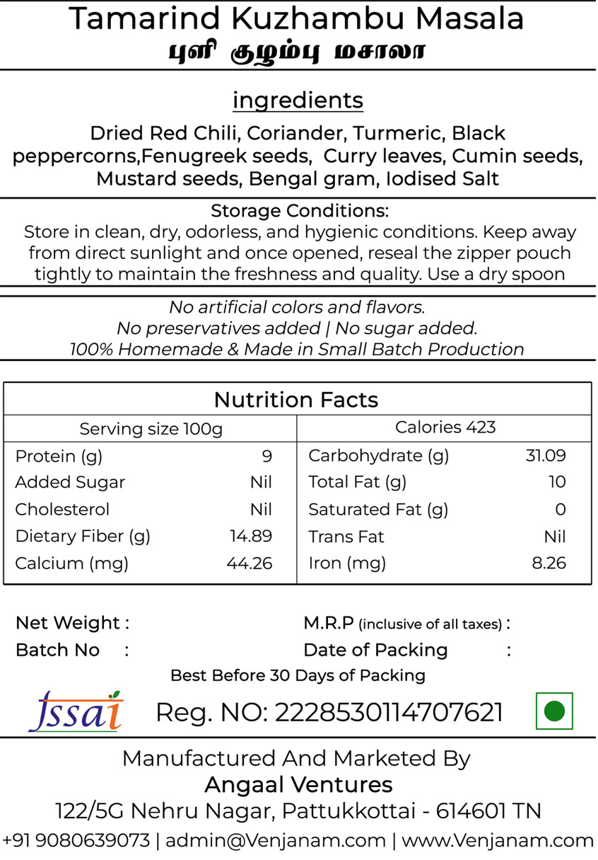 வெஞ்சனம் புளி குழம்பு மசாலா – உண்மையான தமிழ்நாடு புளிப்பு & காரக் குழம்பு கலவை